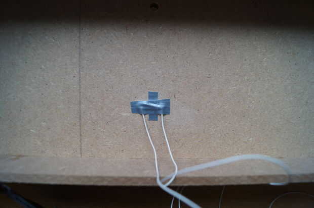 A continuación, puede poner en los contactos reed y utilizar alguna cinta adhesiva para fijar los cables en la parte inferior.