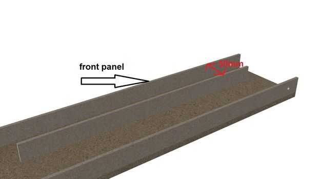 (El espacio entre la parte delantera y el panel central es de 50mm).