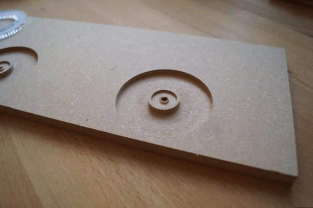 A continuación pegar los engranajes anulares y la parte inferior de los rodamientos de bolas en el otro lado.