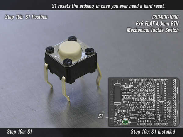Paso 10:6 X 6 plano 4,3 mm interruptor táctil BTN a posición S1