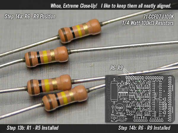 Paso 14:1 / 4 watt 100Kohms 5% resistencias de película de Metal a posiciones R6 a través de R9