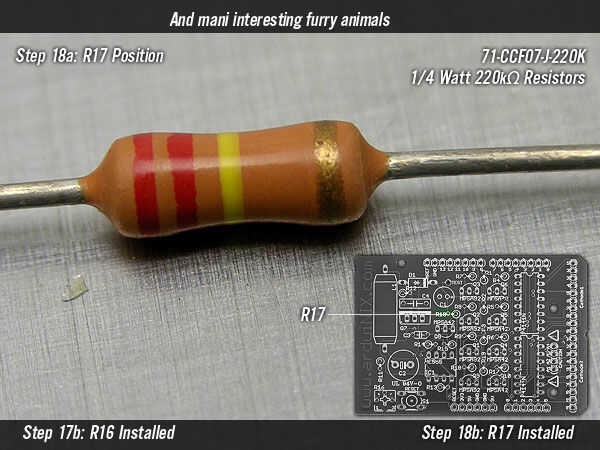 Paso 18: 1/4 watt 220Kohms 5% Metal Film Resistor a posición R17