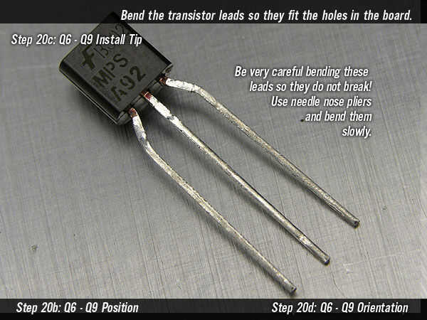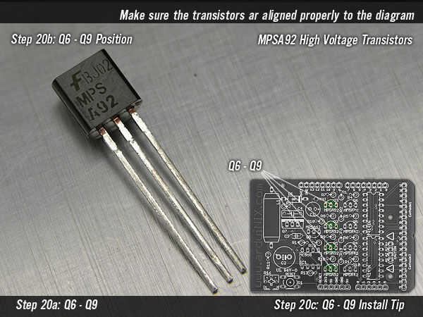 Paso 20: PNP MPSA92 pequeña señal de transistores a posiciones Q6 a Q9