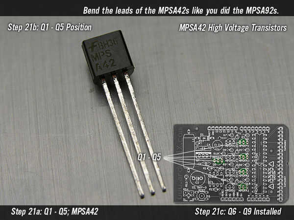 Paso 21: MPSA42 NPN transistores de señal pequeña a posiciones Q1 a Q5