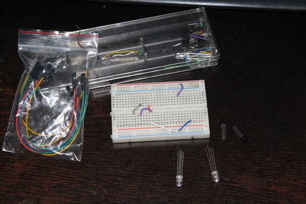 ¿Por qué usar transistores? Los pernos digitales de Arduino simplemente no fuente de corriente suficiente para alimentar la cantidad de LEDs que queremos. Cada 2N3904 puede manejar 200mA, más que suficiente para encender los 4 LEDs cada uno está conectado a.