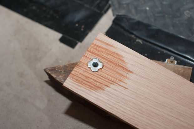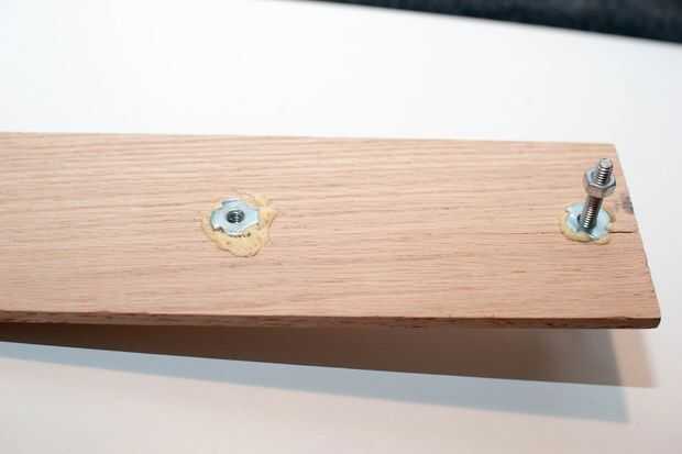 Cuando añadir las tuercas en T te recomiendo colocar pegamento antes de martillo en y ser suave martilleo. Empecé un split en mi tablero inferior (ver foto) que tenía que reparar.