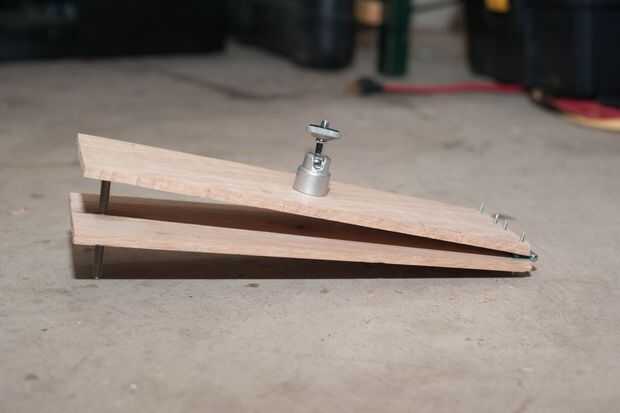 - Trípode - centrada en el tablero superior, el tamaño depende de la cabeza del trípode, también utilicé una arandela en la mía para mantenerlo cómodo.