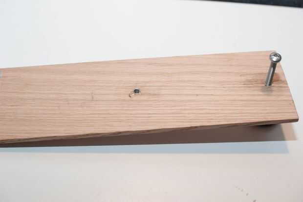 - El Clockwheel - 29 cm desde el centro del pasador de la bisagra, conseguirá una tuerca en T, la ubicación de este agujero es esencial para sacar la Junta y el cielo da vuelta a la misma velocidad cuando se gira el tornillo a 1 rpm. El T-nut debe ser en el abajo frente lado del tablero (hacia el suelo).
