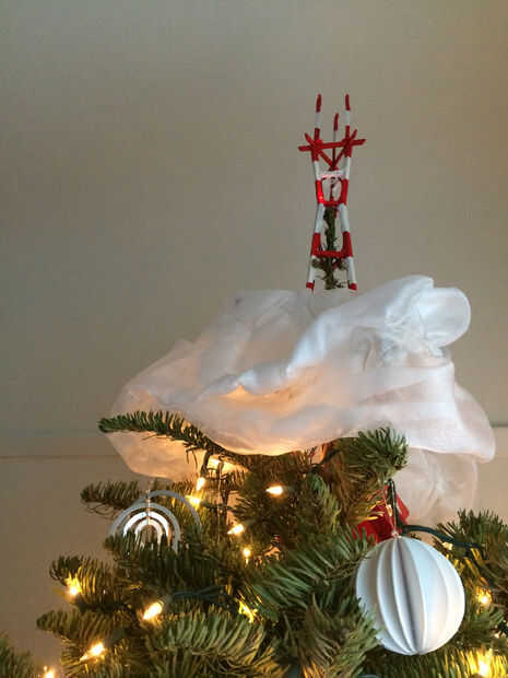 Para ocultar la caja y los cables feos, cuelgue la niebla en la parte superior del árbol. Et voila! Tiene su propia versión mini de Torre Sutro y Karl la niebla.