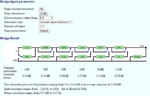 Encontré calculadora en línea atenuador logarítmica que me dio no sólo valores, sino esquema para mi proyecto.