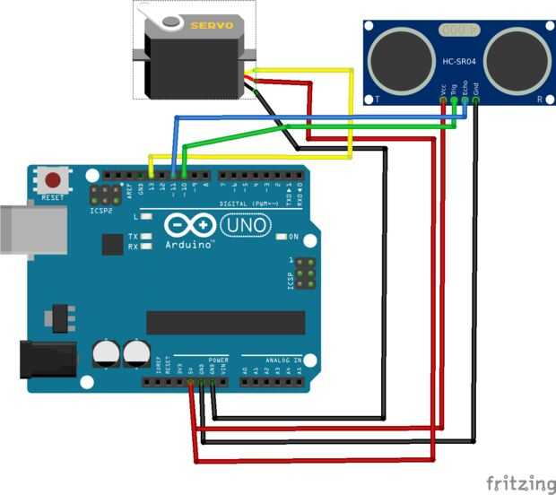 - Motor servo. (+ montaje opcional conectado en él para el HC-SR04, crear uno o comprar uno) uno de cartón y caliente pegado a los alambres de.