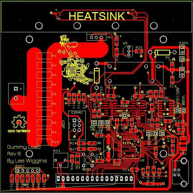 Los rastros pesados grasa grandes son los rastros de carga son que grande así puede llevar la corriente requerida, también, tanta corriente puede causar mucho ruido en el circuito así que puse todo el equipo sensible del ruido lejos de todo.