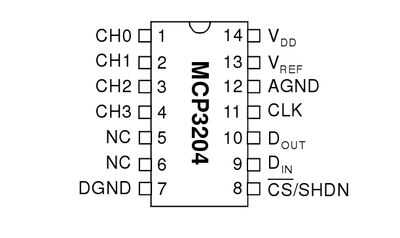 Un ADC (Analogue to Digital Converter) nos ayuda a leer una tensión analógica y convertirla a un número digital binario que permite que el microcontrolador ponerlo debajo. Este MCP3204 (hoja de datos) ADC Microchip realiza y utiliza una interfaz SPI para comunicarse con el microcontrolador. Voy a hablar más sobre el SPI en otro paso.