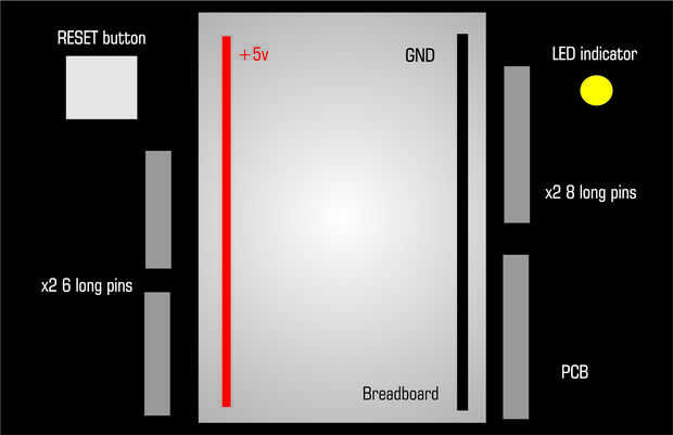 La siguiente imagen muestra el diseño estamos intentando hacer. Como se puede ver, los pernos largos nos ayudará a alcanzar la placa más fácil cuando se trata de un circuito.
