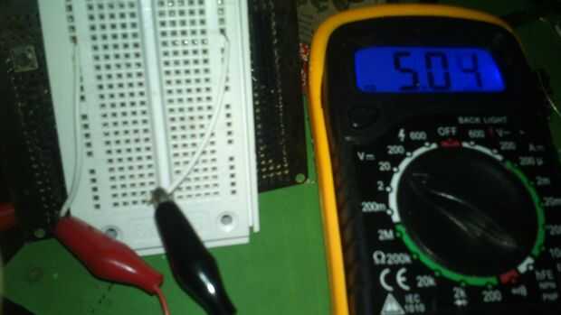 Ahora, insertar los cables de puente en ambos trenes, quiere comprobar si realmente están conectados. Esto es por suministro de + 5V en el escudo y la tierra.