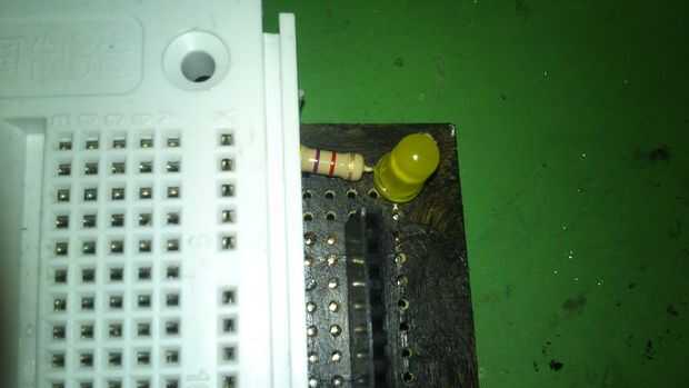 Siguiente es para agregar un indicador cada vez que usted reajuste el arduino. Simplemente es colocar el lado positivo (ánodo) o pin más largo de su LED al pin 13 y su lado negativo (cátodo) o más corto que una pierna de un resistor de 220 ohmios (esto es porque utilicé un LED amarillo). La otra pata de la resistencia se va al suelo.