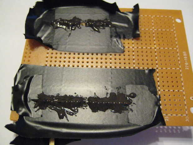 • Epoxi de la mezcla y aplicar (yo uso JB weld para esto, y funciona realmente bien. Tiene una consistencia casi como una pasta. Algunos epóxidos son más que moquea)
