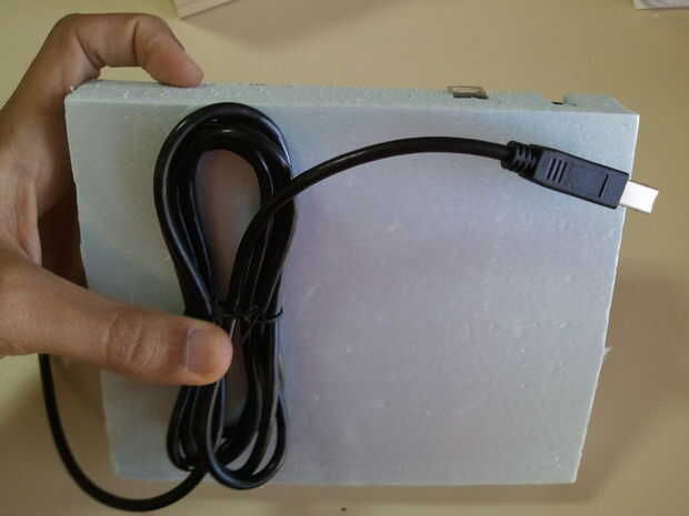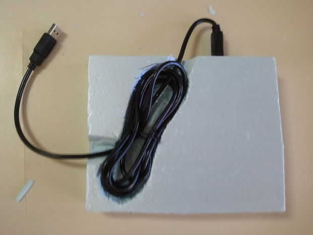 2.3 vuelta el tablero de la espuma azul en su parte posterior y colocar el USB