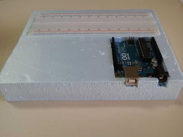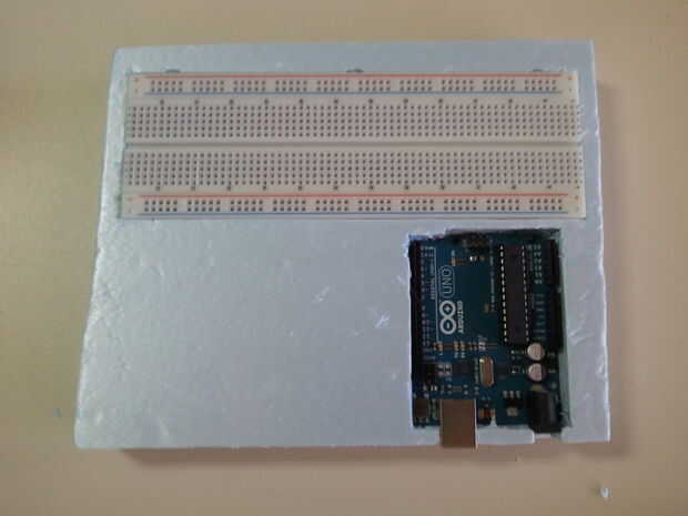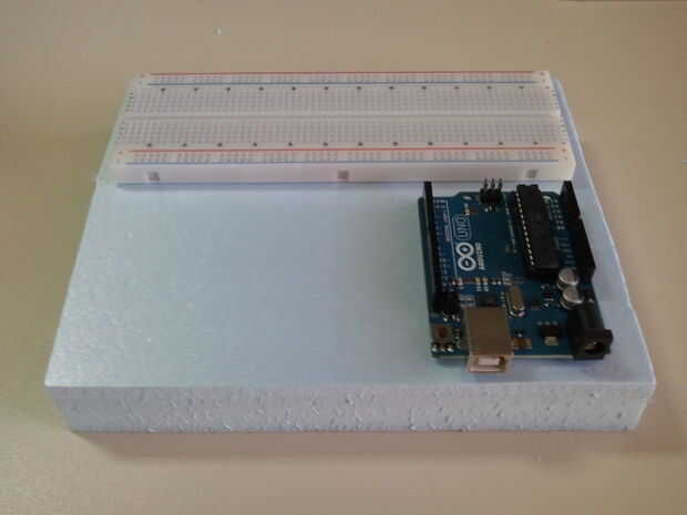 2.1 posición tu Arduino, protoboard y otros dispositivos en la