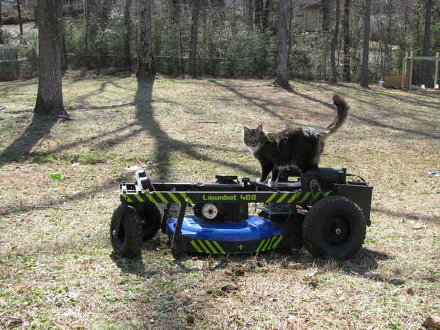 Ver una versión ligeramente diferente de la Lawnbot400 en mi nuevo libro "robótica Arduino" , así como un DIY Segway y varios otros bots.
