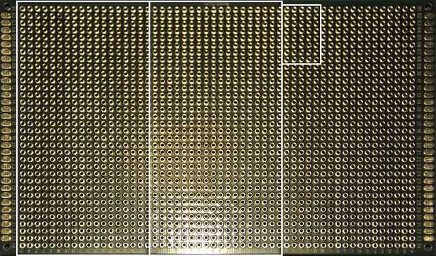 Perfboard que utilicé para este proyecto es que un doble cara con agujeros de soldadura redondos.