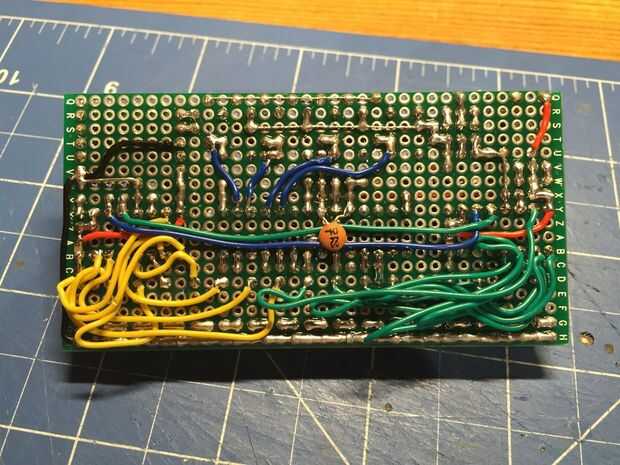 4. seguir adelante con los cables de + 5V y GND no te olvides de poner las fundas de 100nF para desacoplar cerca el 74HC595 que utilicé algunos Caps de 100nF SMT 805 que solo están poniendo alrededor en el bin de mi parte y se adaptan muy bien debajo de la. Después de haber terminado esto que estás cerca de la final y la placa debe ya mira "presa" muy desordenada que no comete un error más grande con el cableado encontrar que cualquier "bug" no es fácil en esta etapa créeme que sé lo que estoy hablando.