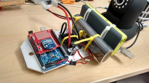 También, puesto que se trata de dos baterías, los motivos de dispositivos conexión a estas baterías deben ser comunes, para que todas las tensiones de señal se basan en el mismo valor de referencia. Para ello, he conectado el conector de tierra para el circuito ESC batería Eliminator (BEC) a la Arduino GND. También hay una conexión entre un divisor de potencia USB y el Arduino GND. Este terreno común es necesario para que el manejo servos y acelerador las señales enviadas desde el Arduino se reciben en los voltajes correctos.
