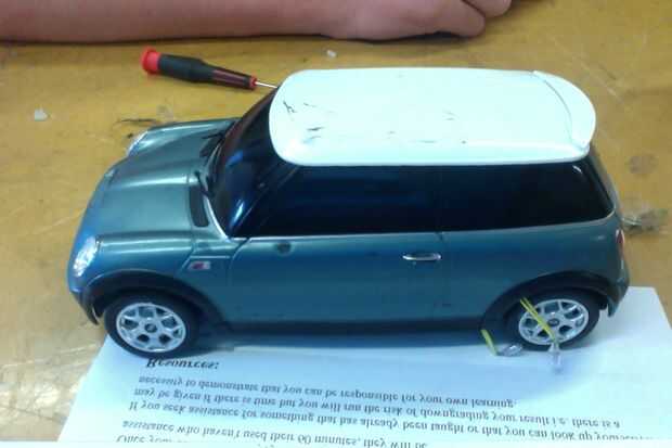 Despegar la parte superior del coche para que puedas ver la placa de circuito y desenroscarlo de su soporte.