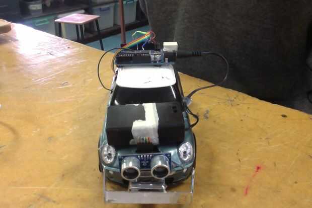 ahora el coche se conducir hasta objeto (como una pared) y dejar unos 20cm de distancia entonces inverso del objeto y mantener en la conducción