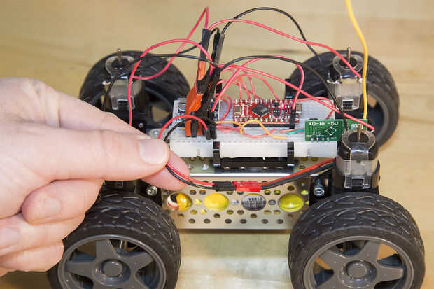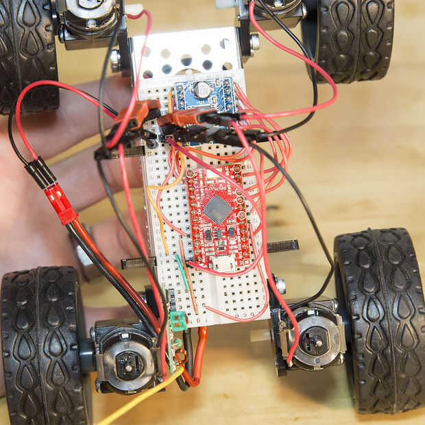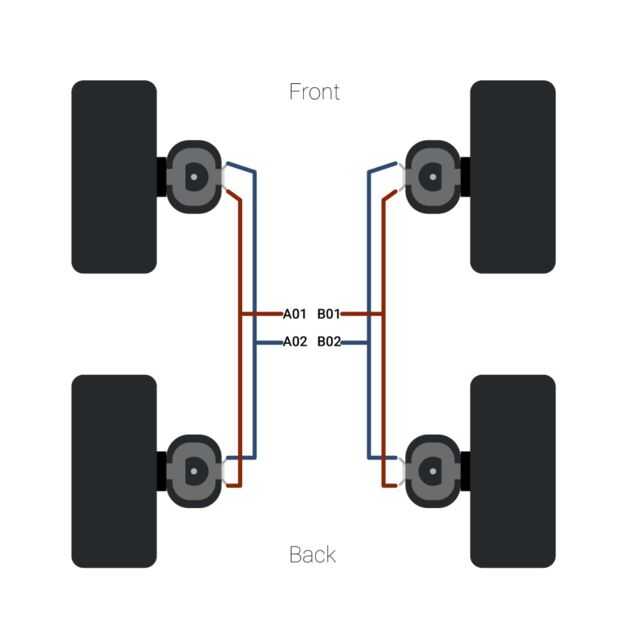 Para mantener girando en círculos o conducir hacia atrás cuando usted primero probarlo ha proporcionado una visión de arriba hacia abajo de los motores para ayudar a orientar. Esto supone que ha montado todos los motores que son hacia los terminales de soldadura.