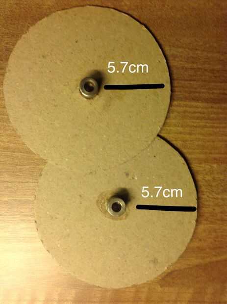 -hacer un agujero en el centro de uno de los círculos para fijación motor