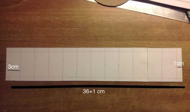 -en el papel de la marca 12 divisiones de 3cm y uno de 1cm horizontalmente