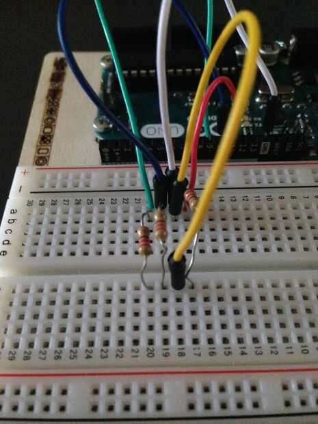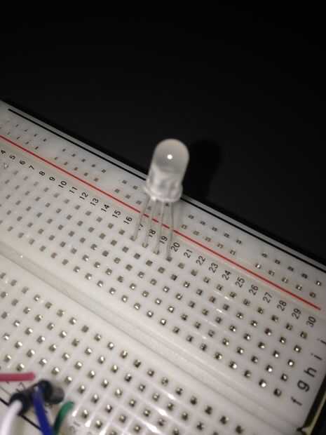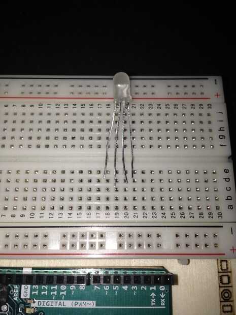 Conectar el RGB led según los cuadros o como abajo, recuerda poner resitors de 220 ohmios a través del rojo y verdes respectivamente azules valores: