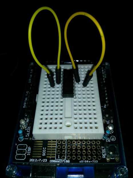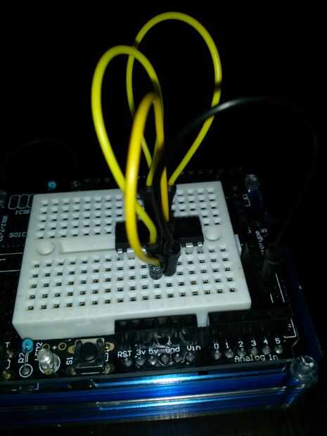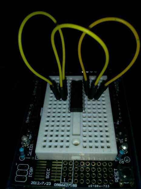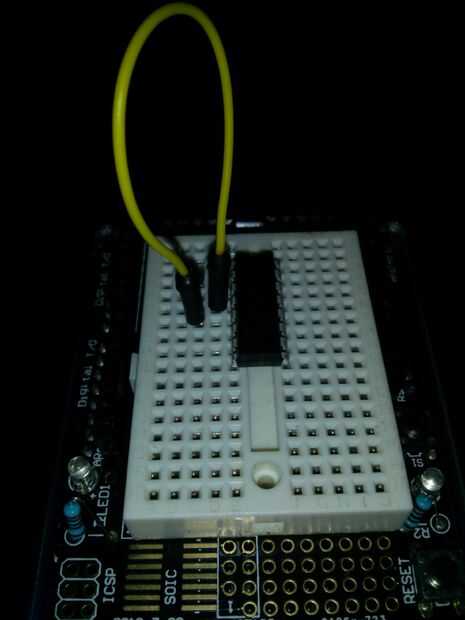 Conectar arduino shield to.arduino Ahora nos estamos cableado del controlador Este primer paso nos estamos conectando todos los 5v juntos. Pin 1 al Pin 16. Pin 1 al riel de 5v de arduino 16 a Pin Pin 9