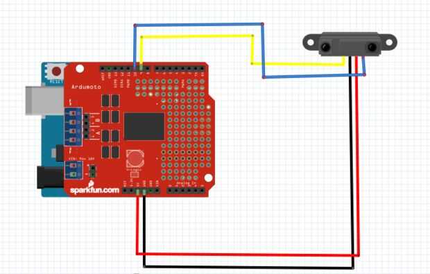Conecte el sensor al escudo, poner "trig" al pin 10: poner el "Eco" al pin 9: y entonces Gnd a GND y el positivo a 5V;