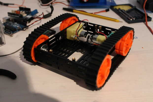 Siempre me ha gustado robots que pueden moverse en terrenos ásperos. Esta vez he decidido que voy a utilizar chasis confeccionado modificarlo un poco y añadiendo unos pocos componentes adicionales. Mediante el uso de un chasis listo rápidamente podrí