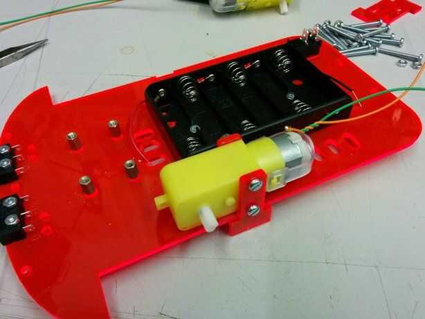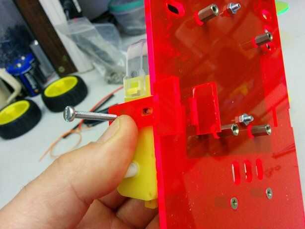 Los tornillos que sujetan el motor deben ser de 28mm de largo. Esto es difícil de encontrar así que utiliza tornillos de 30mm y cortar un poco. Usando los tornillos de 30mm significa que golpeen en la batería.