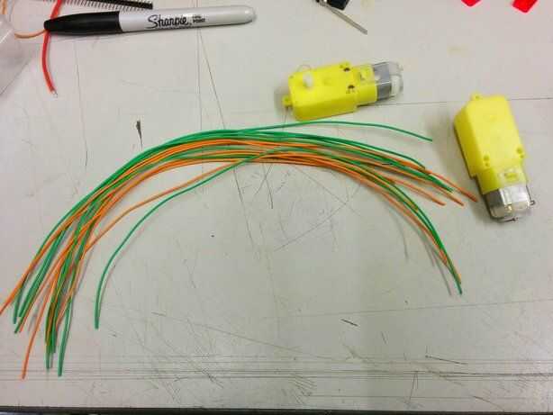 La soldadura de los cables de 15cm a cada uno de los motores.