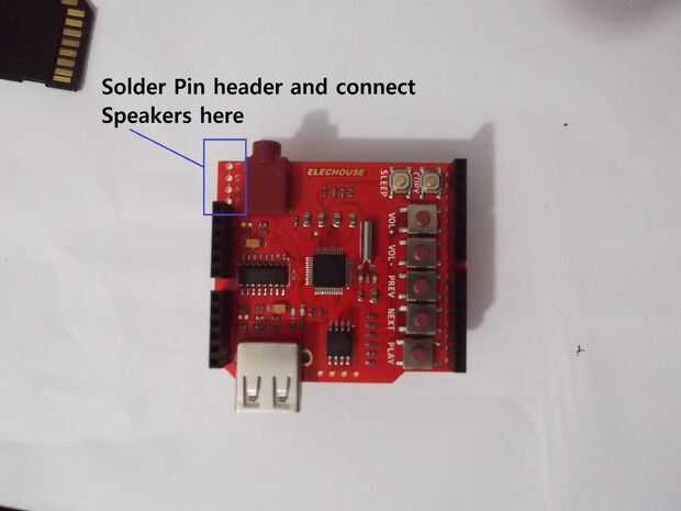 Usted puede también jefe del Pin de soldadura en este escudo "Ver en la imagen" para que pueda conectar altavoces a este escudo