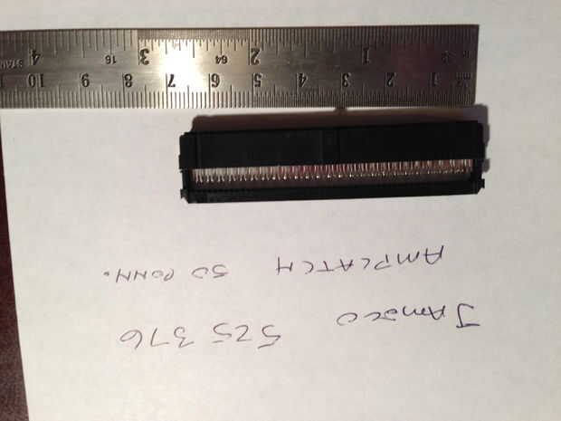 Pero sólo usaré cada otro pin. El primer canal de señal, los segunda 5 voltios, tercero será señal canal 2 en el mux, cuarto será 5v. No necesito 5v hacia fuera en mi dispositivo - más bien una negativo/tierra y éstos se todos se iban juntos. Así que fuera de 50 cables yo uso 24. Habría sido genial a cable a tierra- pero con este conector sólo puedo entrar a VCC.