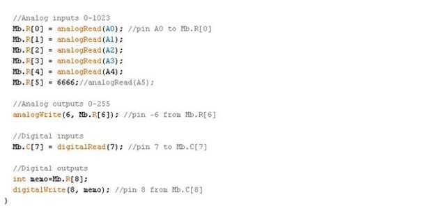 La comunicación modbus TCP se fera par l 'intermédiaire de conferencia ou d' écriture de registro 16 bits créés par la librairie mudbus de l'arduino et portant les noms de: