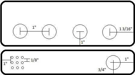 Primero limpie el material de embalaje de la caja del iPhone. Utilizando el 5/8 broca, perfore los agujeros para el botón de encendido en el lado de la caja y los 4 botones de juego en la parte superior de la caja. Ver la imagen de las mediciones y colocación de los botones.
