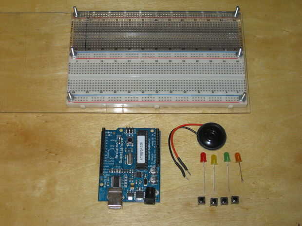 Este es un proyecto muy simple que puede hacer cualquier desarrollador de Arduino primera de momento. Le enseña a aplicar múltiples botones y LEDs, así como añadir sonido a un proyecto.
