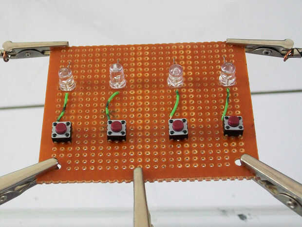Añadir un puente de cable para conectar el pulsador con LED (cátodo). (Ver imagen 1)