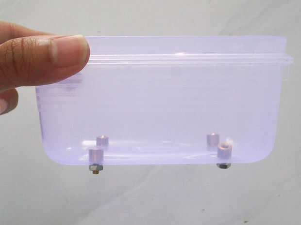 Tenga cuidado cuando usted perforar la caja de "Mercancías de la cocina", porque hecha de plástico. Fácil fundirse si el taladro se calientan, pero está bien puede poner en orden lo usando un cúter pequeño.