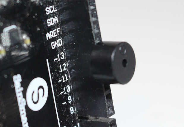 El pin positivo de la bocina se conecta al pin 13 de la Junta de desarrollo.