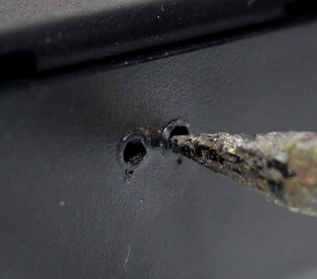 Utilizando un soldador, hice dos agujeros horizontales en la caja para alojar el fotoresistor.