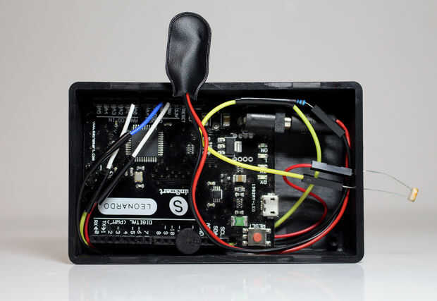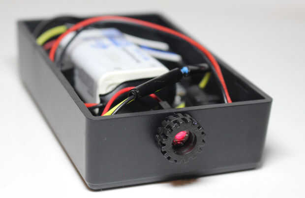 Antes de colocar la batería de 9V dentro del recinto, usé cinta de doble cara para separarlo de la Junta de desarrollo.