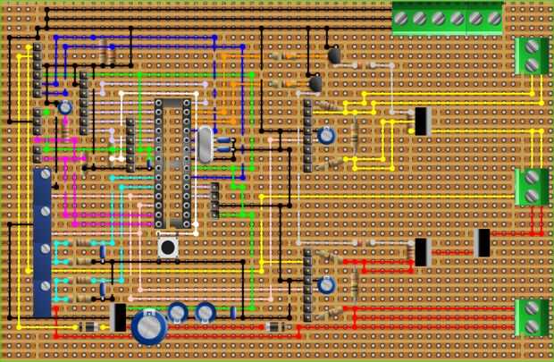 En la fotografía de la placa de prototipo he comentado sobre lo que es para qué dispositivo y dónde encontrar el pin 1.