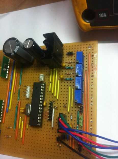 Vamos a empezar por configurar el voltaje de la batería. Con un voltímetro, medir precisamente el voltaje de la batería en los terminales de su batería. Ahora, mediante el potenciómetro en el tablero, tornillo o hasta que el voltaje de la batería en la pantalla coincide con el uno que puede leer en el voltímetro